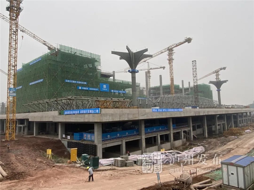 這標(biāo)志著瀘州高鐵站高架站房和側(cè)式站房所有混凝土主體結(jié)構(gòu)全面封頂。接下來(lái),站房建設(shè)將由土建施工轉(zhuǎn)為鋼結(jié)構(gòu)施工,并將同步啟動(dòng)裝飾裝修。